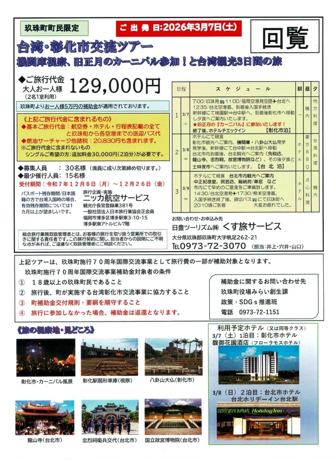 🎈玖珠町民限定🎈台湾彰化市交流ツアー